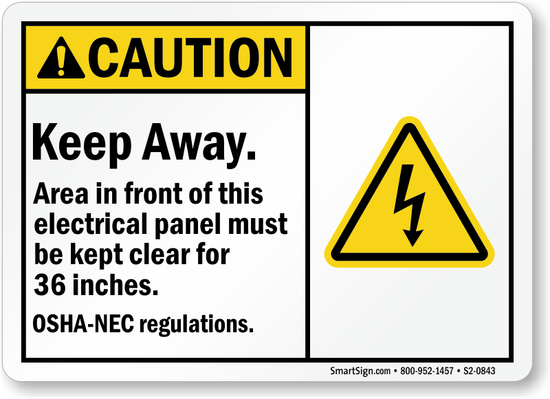 ANSI Caution Sign: Keep Away, Area In Front Of Electric Panel Must Be Kept Clear For 36 Inches, OSHA-NEC Regulations