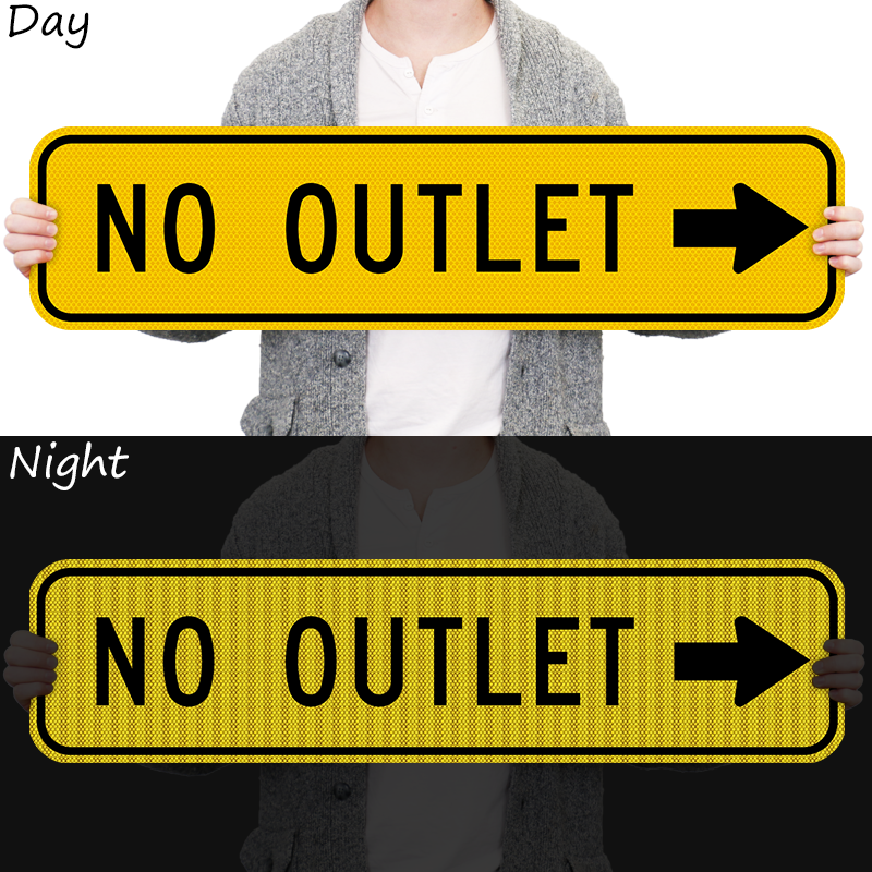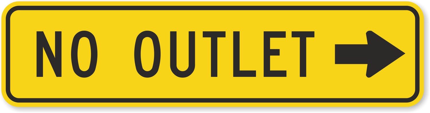 No Outlet sign with arrow shows exactly where the driver will need to turn around to continue onward. A sign is useful and effective.