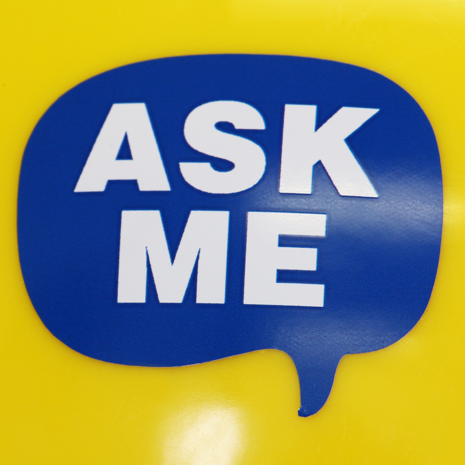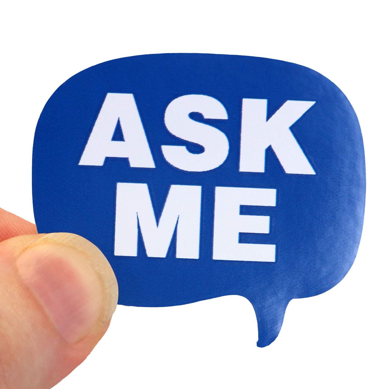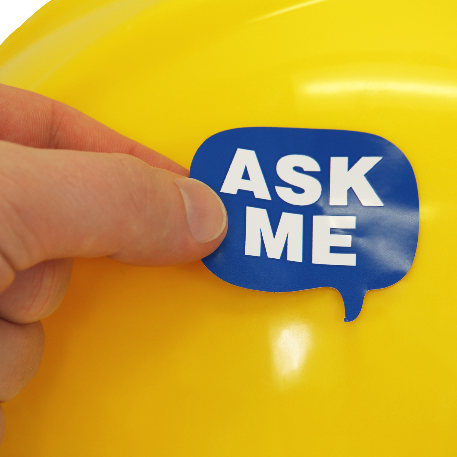 Hard hat stickers are a constant reminder that safety should always be first and foremost. This 'Ask Me' sticker in the shape of a dialogue box breaks ice among coworkers and helps new workers speak up.