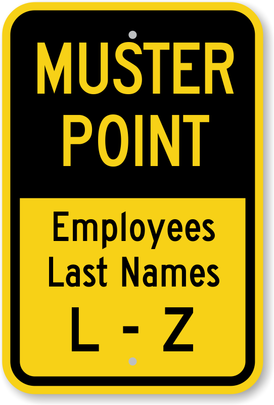 Emergency Assembly Sign: Muster Point - Employees Last Names L-Z K-0098-LZ Learn More...