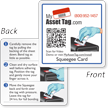 • Squeegee card assists in the affixation of your asset tags, ensuring a lasting bond.