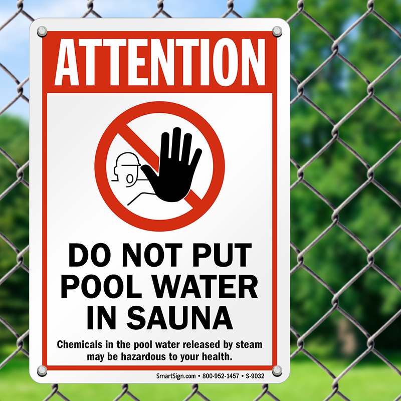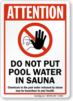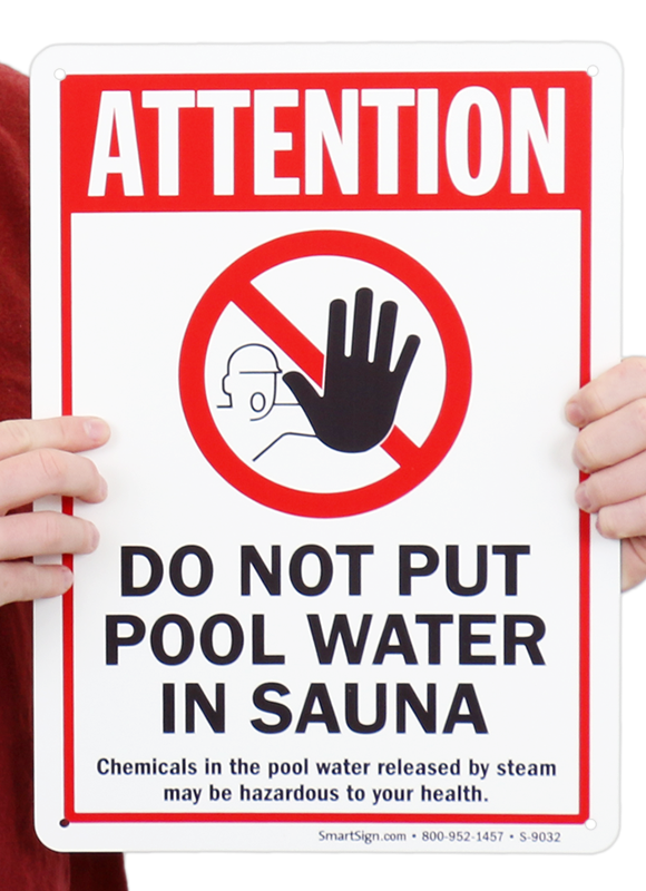 Don't let your guests get any bright ideas about putting pool water in the sauna. This sign will help everyone experience the sauna as it should be, with fresh, untreated water.
