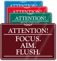 ShowCaseâ„¢ Funny Bathroom Sign: Attention! Focus. Aim. Flush. SE-6932