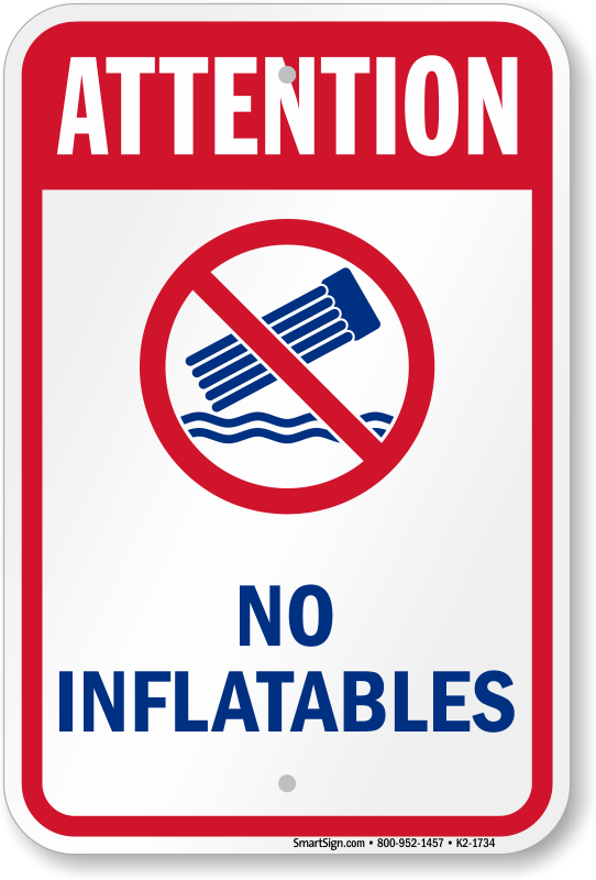 Water Safety Sign: Attention, No Inflatables K2-1734