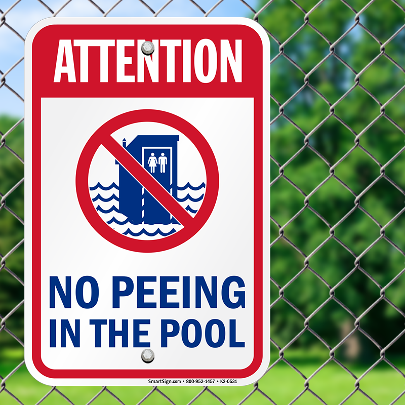 Pool Safety Sign: Attention, No Peeing in the Pool with Graphic K2-0531 Learn More...