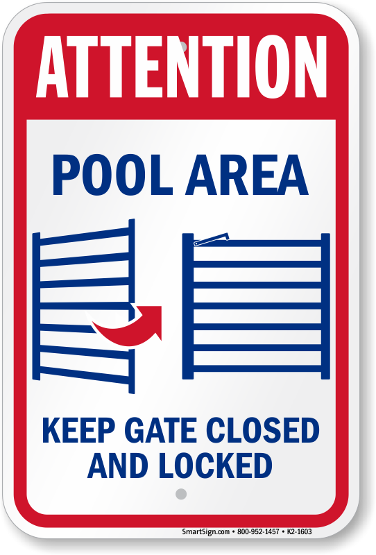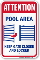 Pool Gate Sign: Attention, Pool Area, Keep Gate Closed and Locked K2-1603