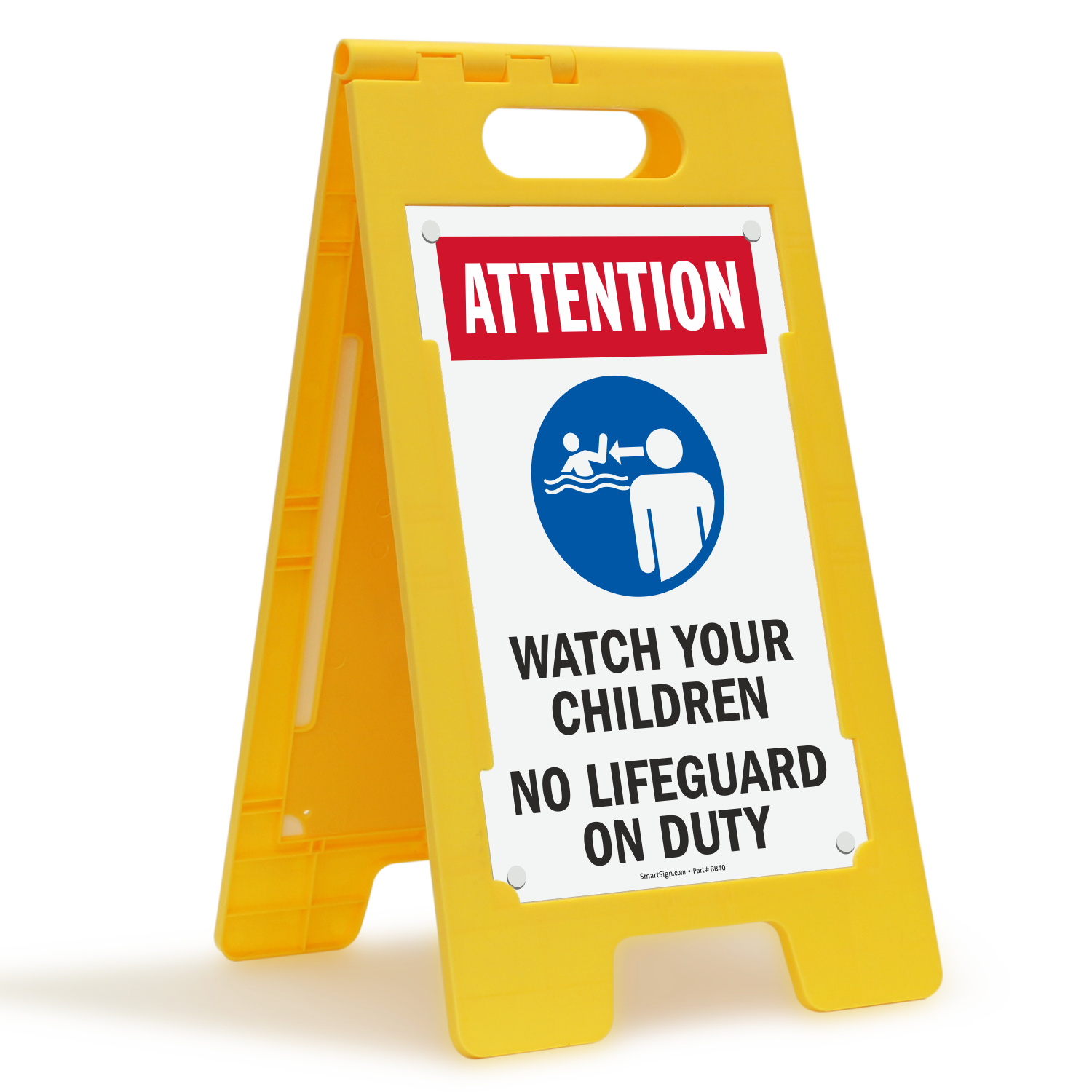Keep children safe from drowning hazards. A symbol communicates your message — Attention - Watch Your Children, No Lifeguard On Duty — in a clear, simple, and effective manner.