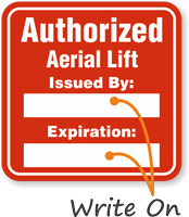 This write-on hard hat decal helps everyone easily identify Authorized Aerial Lift Operator. Use a pen or marker to write the name of issuing person and expiration date on the vinyl surface of the hard hat sticker.