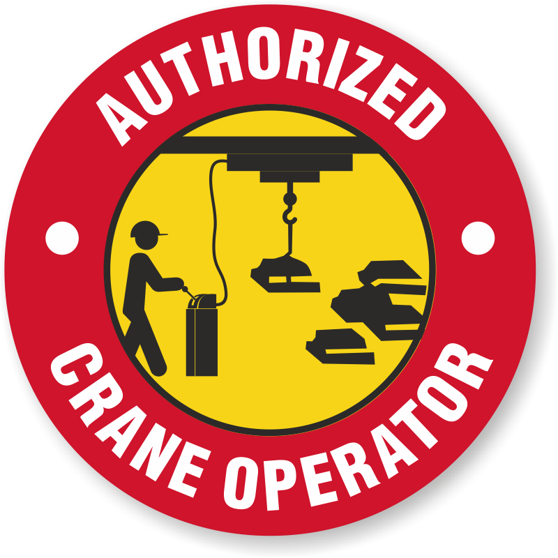 Let everyone easily identify authorized crane operator in your facility. Red and yellow hard hat decal with comprehensible graphic is hard to miss.
