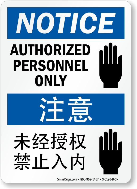 This Bilingual Sign in English and Chinese ensures an effective communication with workers in the language they prefer. Install this and tell workers that only authorized personnel are allowed inside.