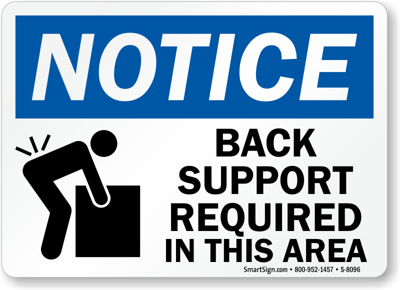 Lifting with legs can be dangerous. Tell handlers to use back support. A notice sign is an affordable yet effective way to prevent lifting injuries.
