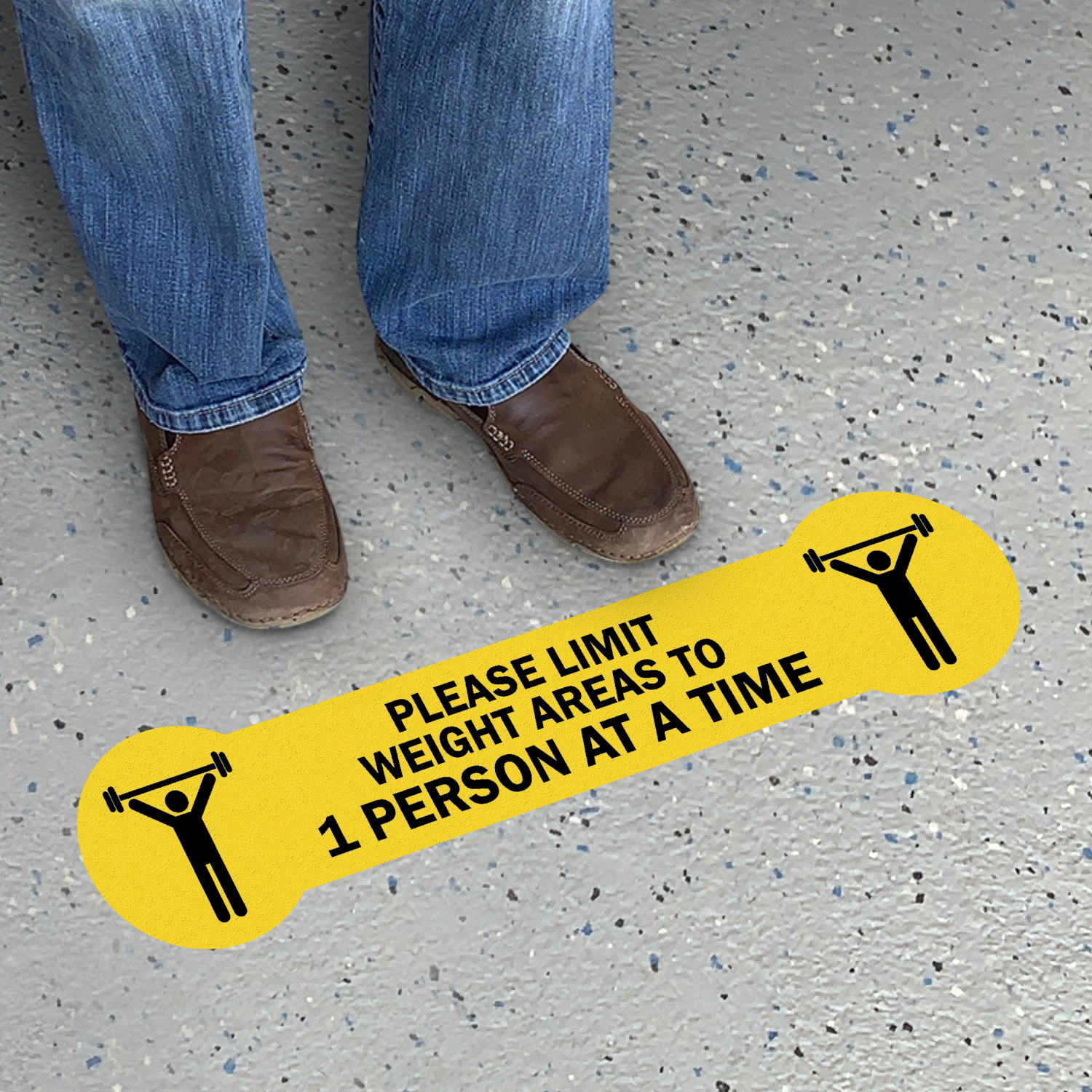 SlipSafeâ„¢ Gym Floor Sign: Barbell Shaped - Please Limit Weight Areas to 1 Person At A Time SF-1174