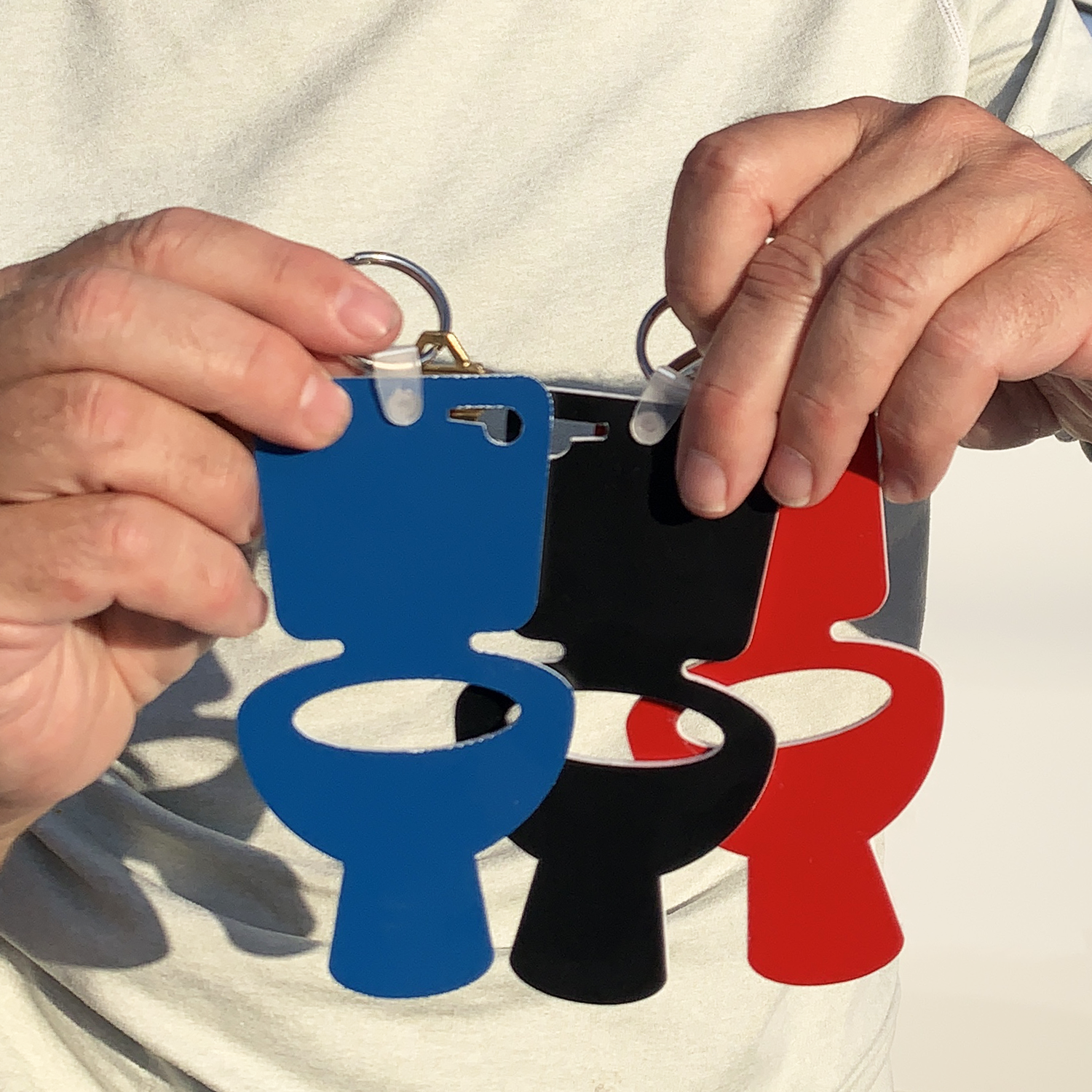 The simplicity of the toilet symbol is becoming a standard for your restroom keychains. Get yours today!