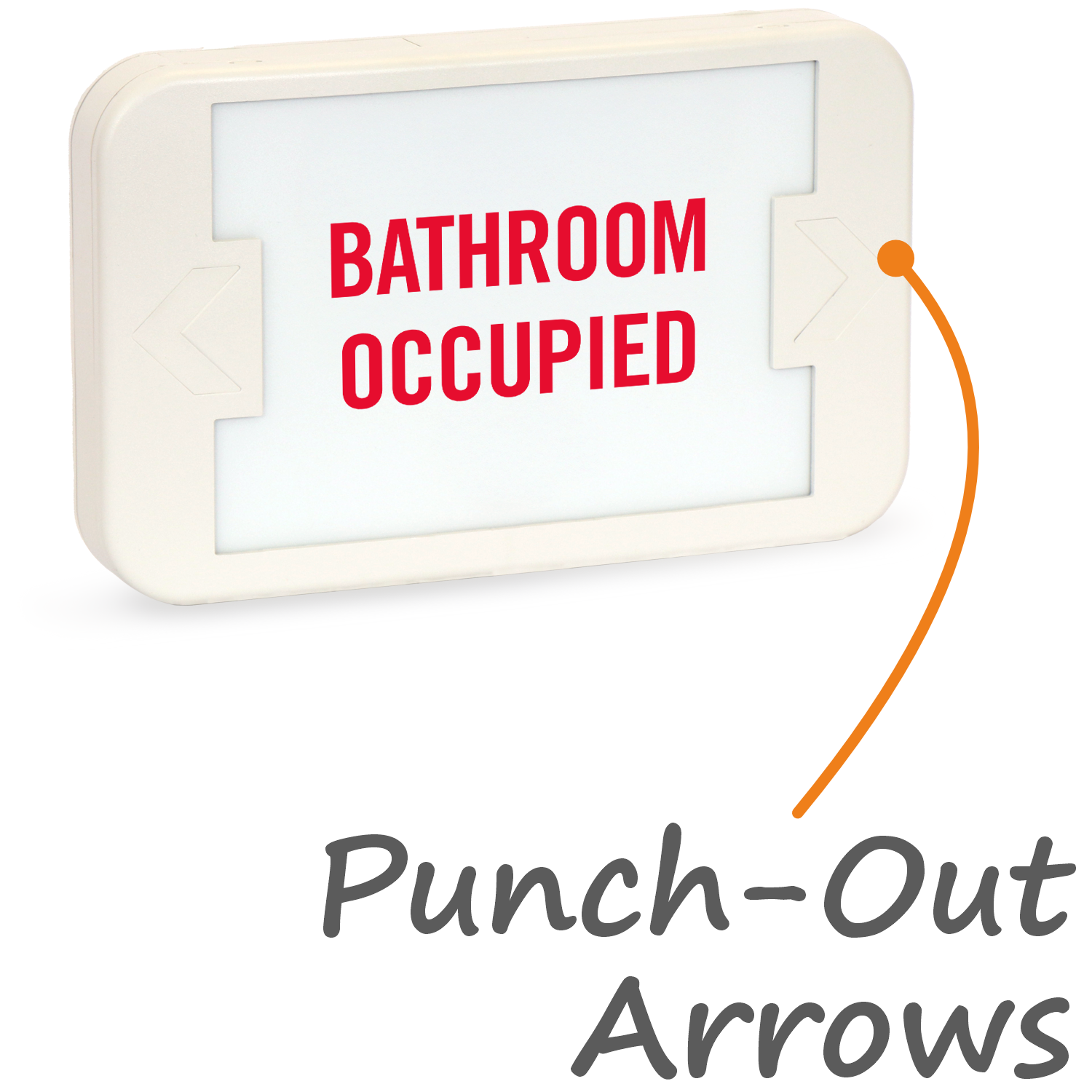 5VA flame retardant thermoplastic LED sign comes with snap-on directional arrows.