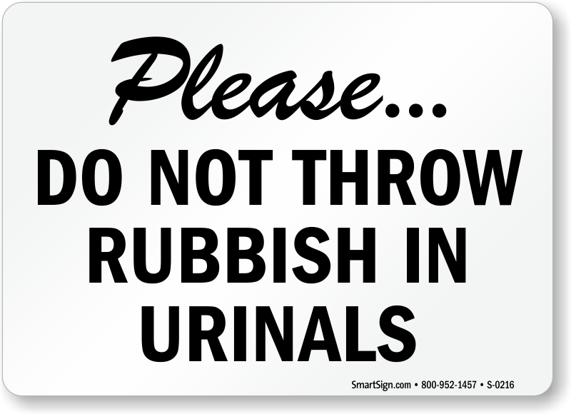 A clean bathroom is a safe bathroom. Use a "please, do not throw rubbish in urinals" sign. Signs make your message clear.