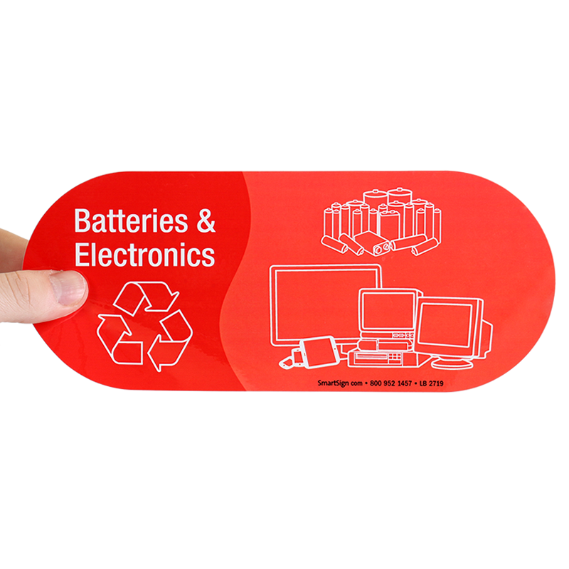 Made of tear-proof vinyl, these Batteries & Electronics recycling stickers are ideal for indoor and outdoor applications.