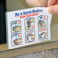 This was perfect. Better than a placard, I got these decals to use on the wall-size mirror in the bathrooms. Something that would allow the mirror to continue to be cleaned smoothly. At a later date, I imagine that I can either peel or scrape these off cleanly. Applying these on was a simple step, just make sure to smooth out the bubbles as you roll it on from one side to the other.