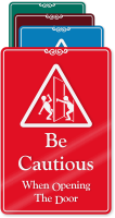 Warn people to be cautious while opening the door. Use this ShowCase Wall sign to keep everyone informed and prevent accidents. Choose from a range of elegant colors to complement your décor.