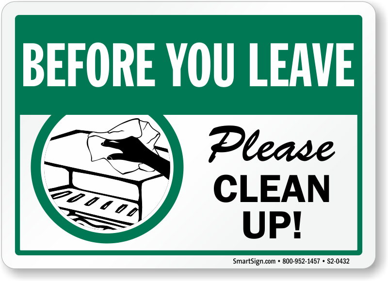Housekeeping Clean Sign: Before you Leave Please Clean UP S2-0432