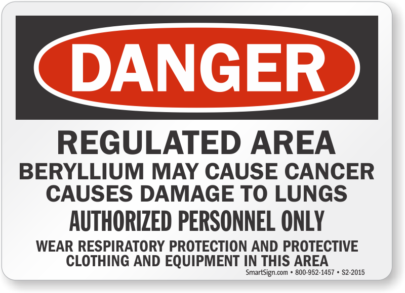 Sign complies with the new Beryllium Warning Standard issued by OSHA.
