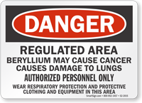 OSHA Danger Sign: Regulated Area Beryllium Cause Cancer Damage to Lungs Authorized Personnel Only Warning Sign S2-2015