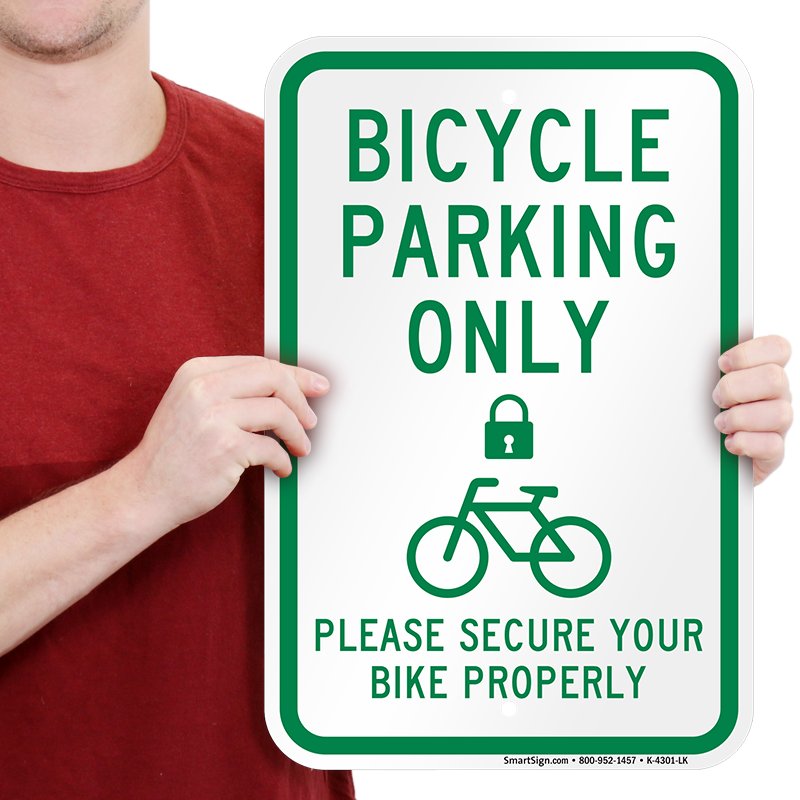 Demarcate Bicycle parking area by installing this sign with symbols of a cycle and lock and remind bike owners to secure their bikes properly to prevent theft.