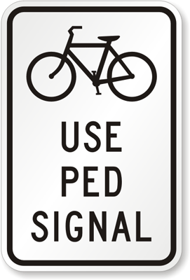 Bicycles Use Pedestrian Signal: (Bicyclists symbol) Use Ped Signal X-R9-5 Learn More...