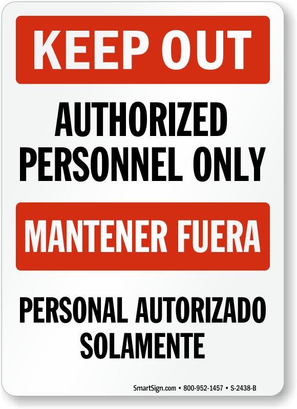 Bilingual text makes this Authorized Personnel Only sign reach a broader audience.