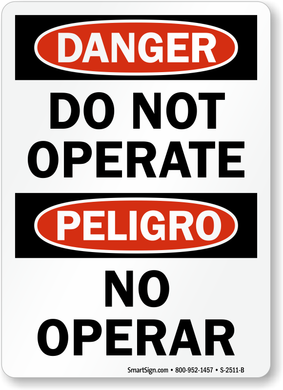 Deploy this Bilingual OSHA Danger sign to ensure that your Spanish speaking workers don't miss out on any important information. The message in English and Spanish prevents workers from operating the machine.