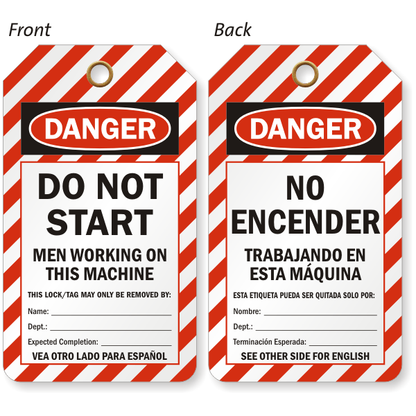2-Sided Bilingual OSHA Danger Safety Tag: Do Not Start Tag No Encender TG-0714 Learn More...
