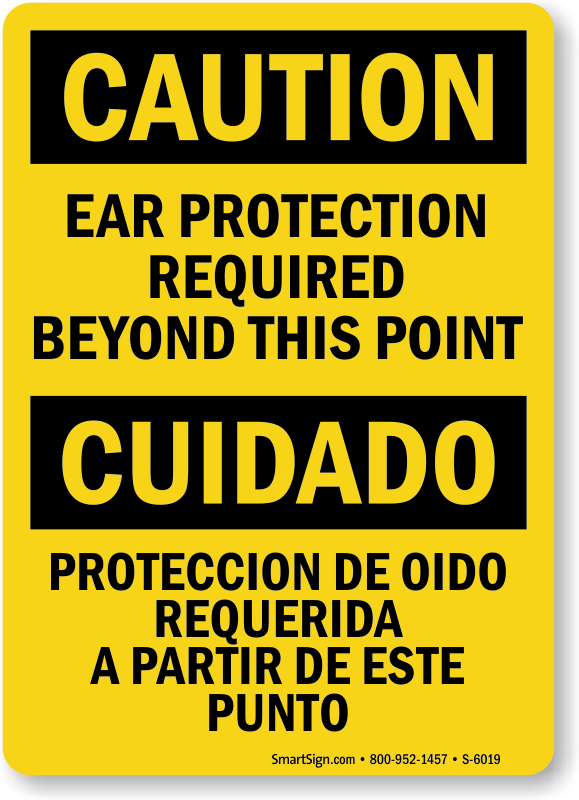 In certain areas, workers in your facility may be exposed to loud noise hazards. Use a Bilingual OSHA Caution Sign to alert everyone that Ear Protection is Required Beyond This Point.