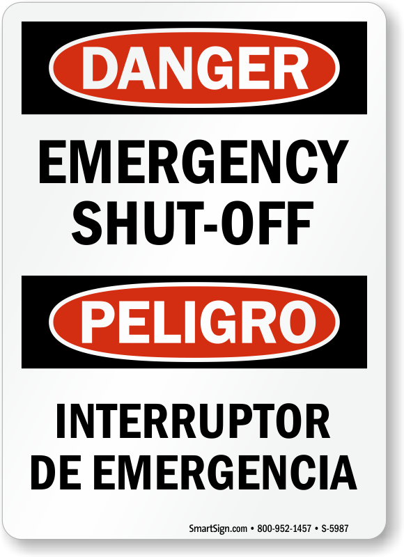 Clearly state where the emergency shut off is, with a bilingual sign and let people know to be careful.