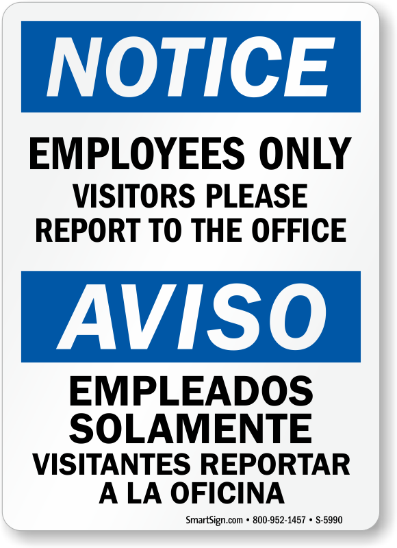 Post this bilingual OSHA Notice sign to inform non-employees that they need to go to the front office to sign in.