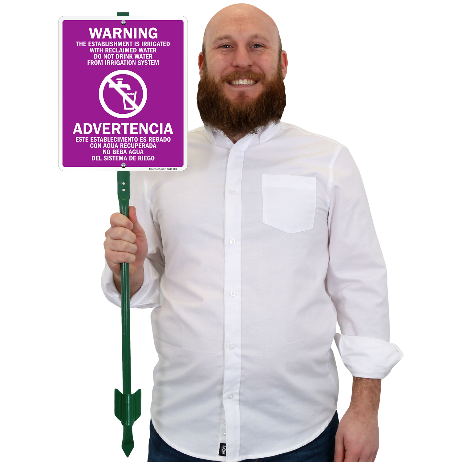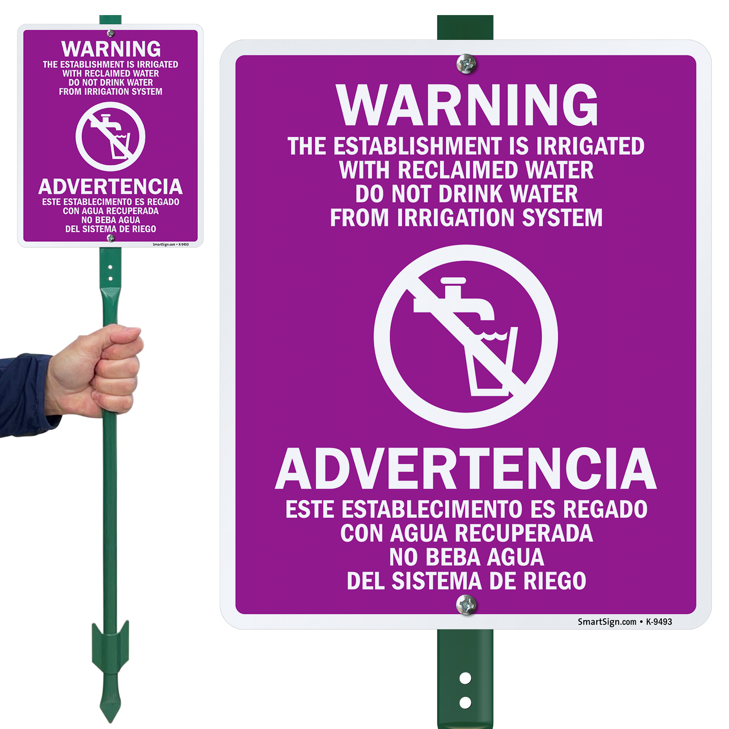 Bilingual LawnBoss® Sign & Stake Kit: Warning The Establishment Is Irrigated With Reclaimed Water Do Not Drink Water From Irrigation System, Advertencia Este Establecimento Es Regado (With No Tap... K-9493 Learn More...