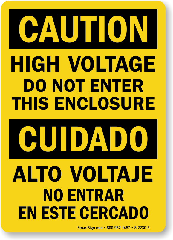 Caution workers against high voltage and prohibit the entry into enclosure by posting this Bilingual Caution sign for English and Spanish speakers to understand the message alike.