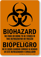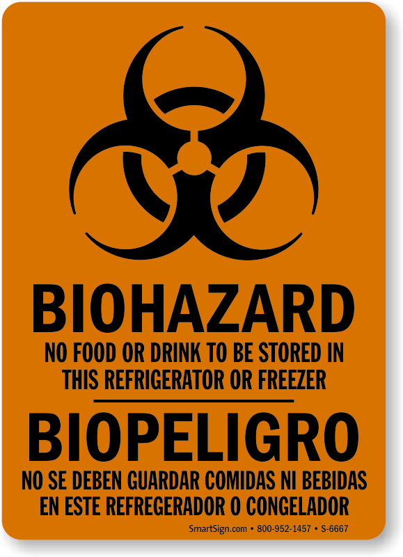 A lot of Hispanic workers might not understand English - communicate important messages like 'No Food Or Drink To Be Stored In This Refrigerator Or Freezer' in English as well as Spanish. Bilingual message reaches a wider audience.