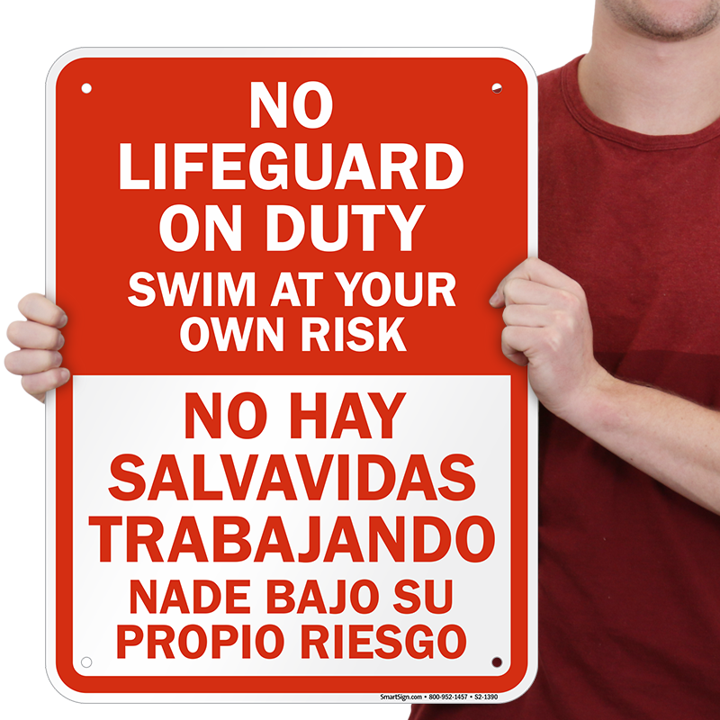 Bilingual No Lifeguard on Duty Sign: No Lifeguard on Duty, Swim At Your Own Risk/No Hay Salvavidas Trabajando, Nade Bajo Su Propio Riesgo S2-1390 Learn More...