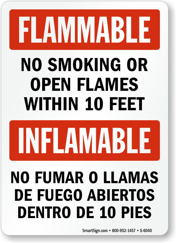 Clearly mark areas at risk and prevent accidents. Post a Bilingual No Smoking Or Open Flames Sign that addresses a broader audience.