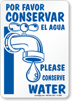 Stress the importance of saving water with this bilingual sign - in English and its Spanish counterpart.