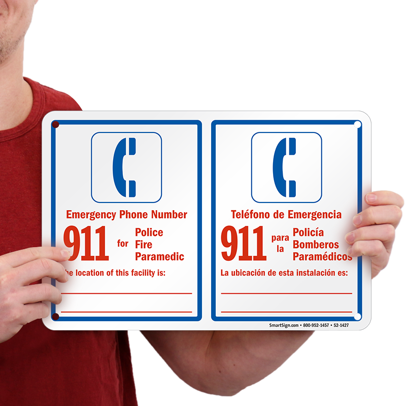 Bilingual Pool Area Sign: Emergency Phone Number for Police, Fire and Paramedic/Telefono De Emergencia Para La Policia, Bomberos Paramedicos S2-1427 Learn More...
