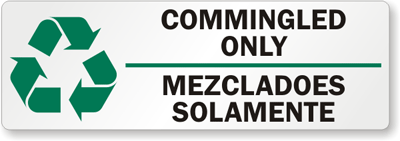 Consolidate recyclables with a Commingled Only Label. Bilingual Mezcladoes Solamente Decals make recycling easy.
