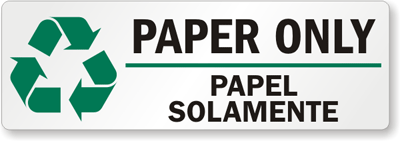 Make recycling simple with a Bilingual Recycling Label. Papel Solamente Labels encourage people to separate before recycling.