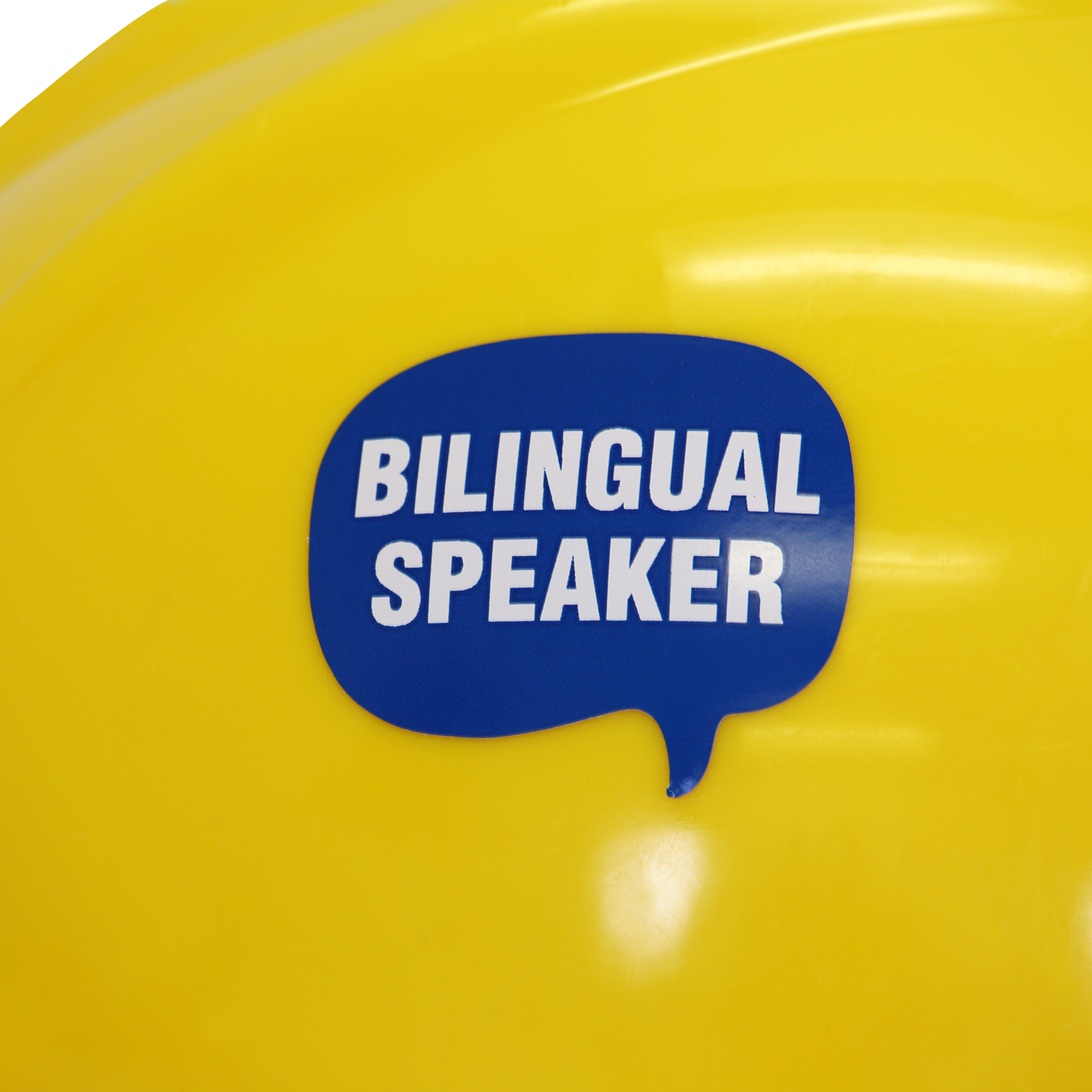 Don't let language become a barrier in safety. Encourage people to speak, raise their doubts, and discuss safety matters in your organization, irrespective of which language they speak—English or Spanish. This 'Bilingual Speaker' hard hat sticker clearly identifies those who understand and speak both the languages well.