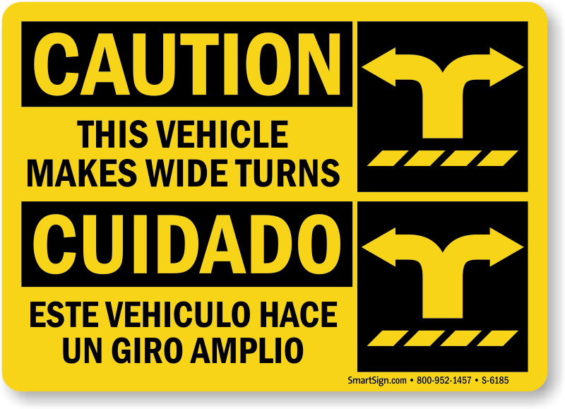Warn both English and Spanish speaking drivers that your vehicle makes wide turns.