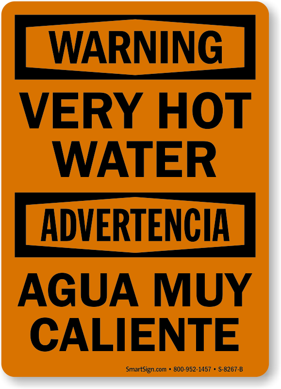 A facility with diverse workforce needs the message in languages understood by all. Utilize this Bilingual OSHA warning sign to warn against very hot water.