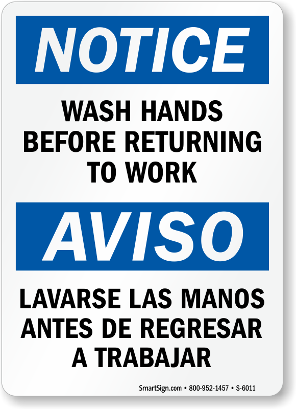 A hand wash sign reminds employees to maintain hygiene and reduce contamination. Cater to a broader audience with a Wash Hands Before Returning To Work Bilingual OSHA Notice sign.