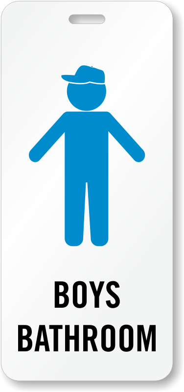 A clear blue figure identifies this hall pass as Boys Bathroom Pass and leaves no room for confusion.
