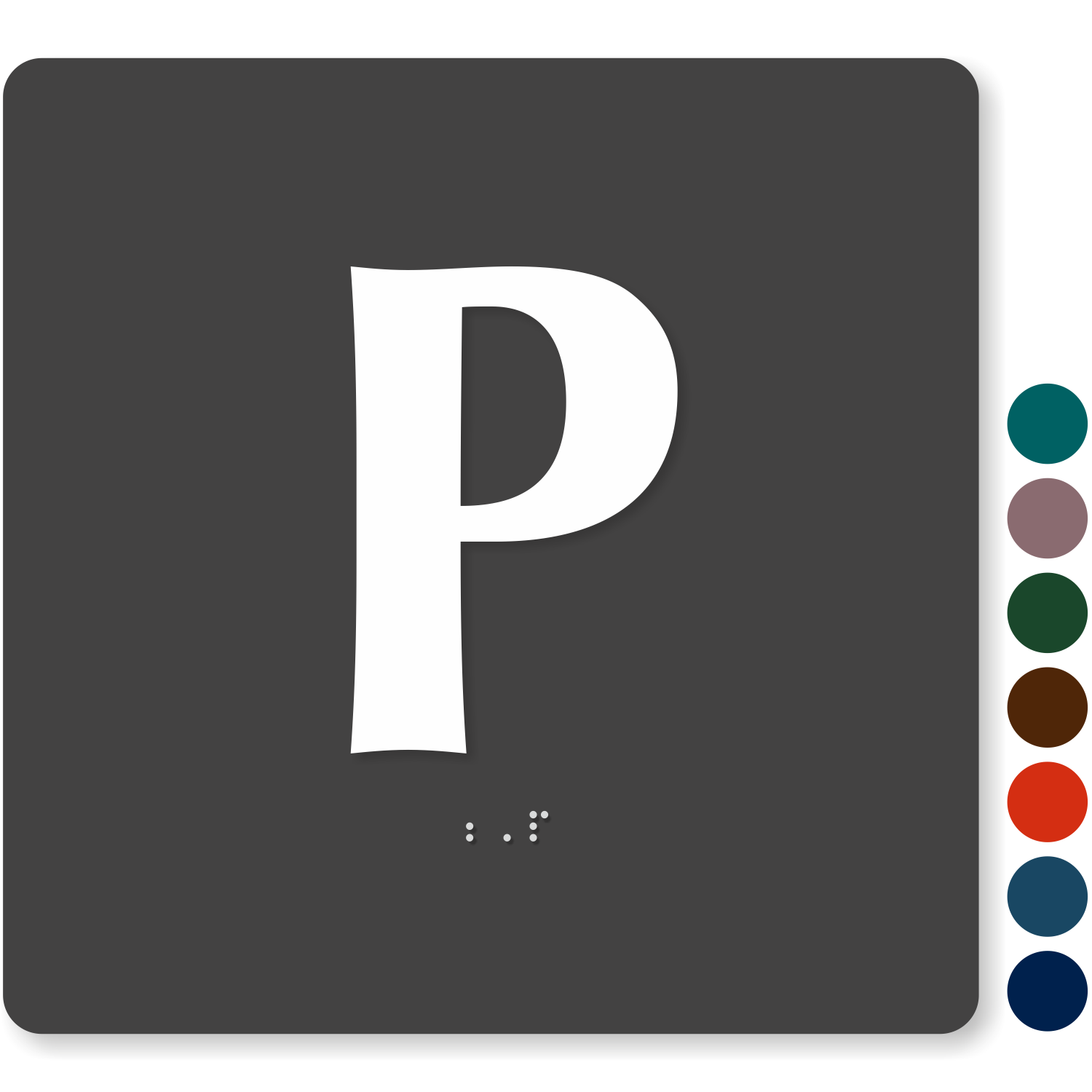 8" x 8" TactileTouchâ„¢ Braille Sign: Sign With Letter "P" SE-2683-P