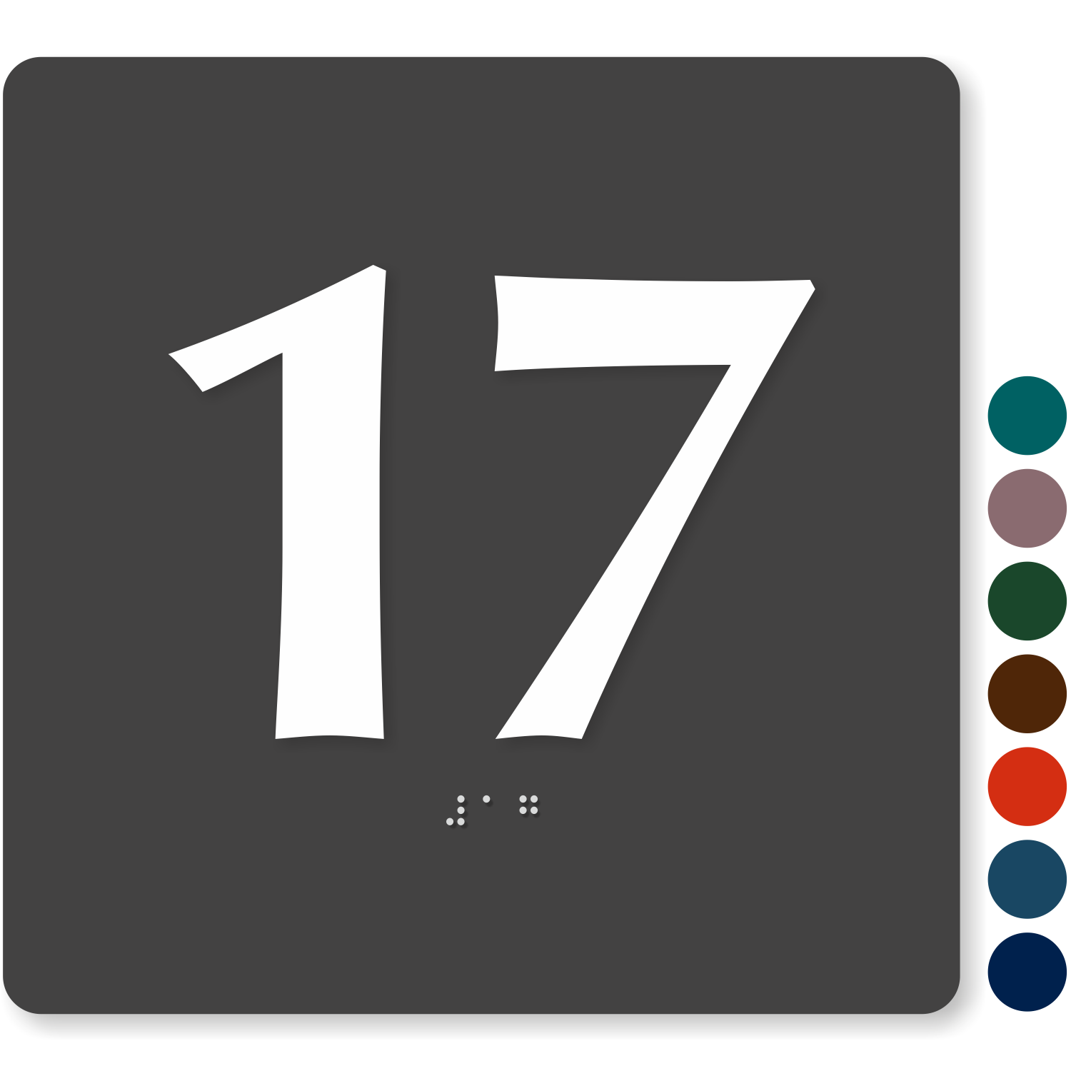 8" x 8" TactileTouchâ„¢ Braille Sign: Sign With Number "17" SE-2683-17