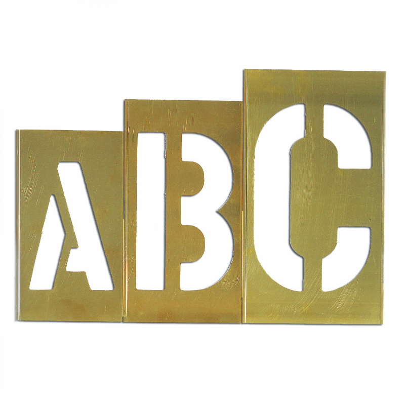 Rugged brass stencils will last forever. Reuse them over and over again for quick, legible signs on almost any surface. Gothic style characters are used in a horizontal position for marking boxes, crates, drums, pipe or just about anything.